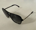 Chanel - Pilot Sunglasses - Black with Gold Pilot sunglasses with metal & calfskin frames. Details: Metal & Calfskin Black & Gold. Lenses: Gray, Polarized, Gradient Features 100% UVA and UVB Protection CE - Lenses are UV Category Filter 3 C622/S8 59 14 These are in excellent condition free from scratches or signs of use. I only wore them a couple time. They are in like new condition. Includes everything seen in photos. I purchased these sunglasses from the Chanel store in Highland Park, Dallas, Texas. A copy of the receipt with personal information blacked out is available upon request with purchase.