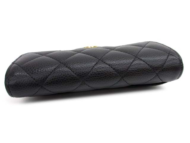 CHANEL Caviar Skin Coco Mark Bi-Fold Wallet with Coin Purse Black Double Hook