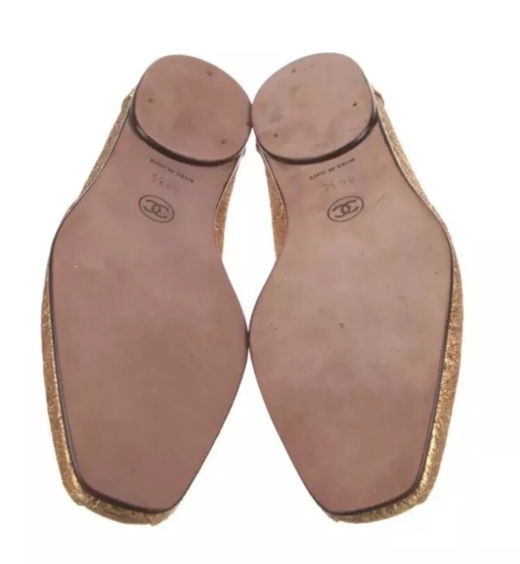 Elevate your footwear collection with these CHANEL Nylon Gold Loafers, a blend of luxury and comfort crafted in Italy. The metallic gold hue adds a touch of sophistication to any ensemble, making these flats a versatile choice for both casual and formal occasions. Designed with the modern woman in mind, the loafers feature a durable nylon upper and a comfortable flat sole, perfect for those who value both style and comfort. The size 6.5 US (36.5 EU, 6.5 UK) ensures a fit that's just right for a variety of foot shapes. Authentic Pre owned, on very good condition