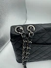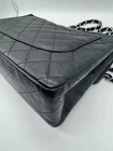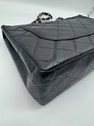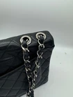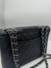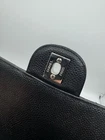 This CHANEL shoulder bag is a must-have for any fashion-forward woman. Crafted from high-quality black leather, this jumbo flap design features a stunning silver CC chain strap that adds a touch of elegance to any outfit. The bag is spacious and perfect for everyday use, while the black lining provides a luxurious and sophisticated feel. The handle and strap are both black in colour, which complements the overall design of the bag. The hardware is also black, adding a sleek and modern touch to the bag. This CHANEL shoulder bag is perfect for any occasion and is a statement piece that will elevate any outfit. The bag is ideal for women who appreciate timeless and classic designs that are both stylish and functional. It is a great addition to any collection and is sure to become a favourite accessory. -Bag is in good condition -Creasing at the back of the bag at the top -No serial sticker