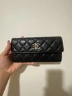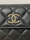 This CHANEL caviar wallet is stunning—barely used and in perfect condition! The black calfskin with light gold hardware is timeless, and it comes full-set with box, dust bag, and receipt copy. Love the spacious interior with card slots and zipped pocket. The option to add a chain makes it so versatile. A true luxury steal!