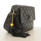 CHANEL Matelasse Quilted Fringe Lambskin Chain Shoulder Bag Beige