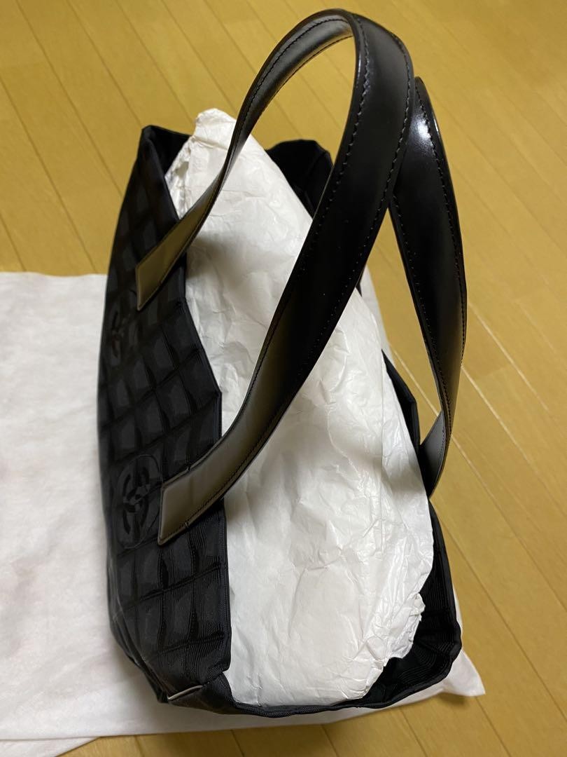 CHANEL Black Nylon Tote Bag with Leather Accents