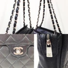 This CHANEL Matelass Chain Handbag is a stunning classic with a bit of character—perfect for those who love vintage luxury! The black leather and signature chain make it effortlessly chic, while the slight wear adds a unique charm. The seller is responsive and provides clear info on shipping and duties. A must-have for any Chanel lover!