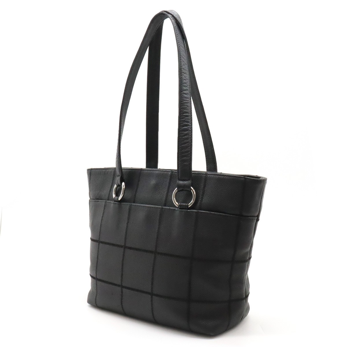 This CHANEL tote is absolutely stunning! The black leather with silver hardware gives it a sleek, luxurious look, and the chocolate bar logo adds a unique touch. It's spacious yet stylish, perfect for everyday use or a night out. The quality is top-notch, as expected from CHANEL. Shipping was smooth, and the seller was very responsive. Definitely worth the investment—I get compliments every time I wear it!