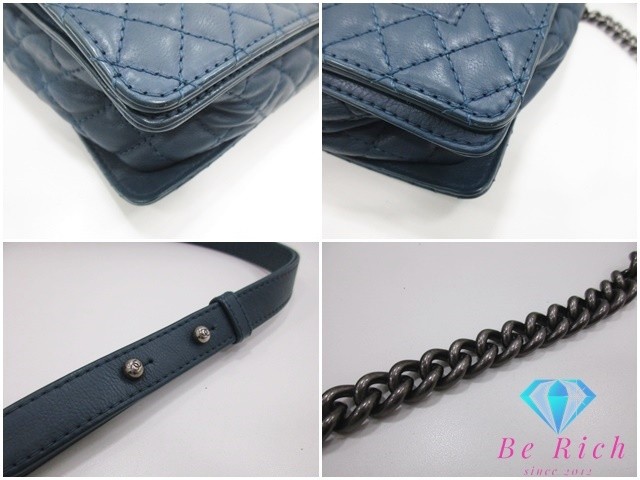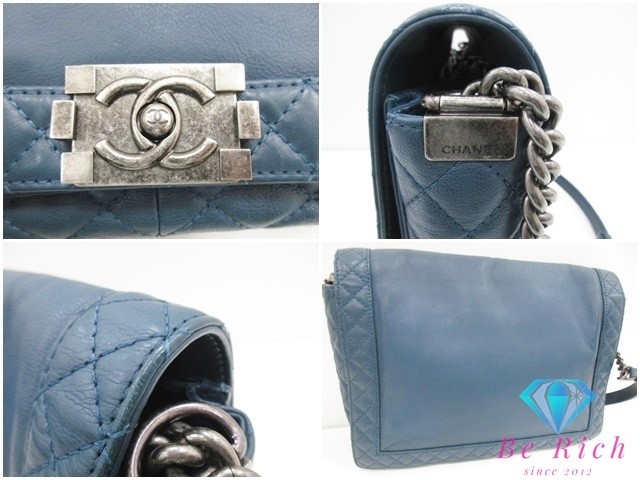 CHANEL Boy CHANEL Chain Shoulder Bag Navy Silver Hardware Leather CC Coco Mark U