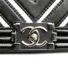CHANEL Boy Chanel 25 V Stitch Chevron Crossbody Chain Shoulder Bag Black Silver