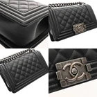 CHANEL Women Shoulder Bag A67085 Boy chanel Small Handbag 7.9" black Description SKU Number 672029 Genre Shoulder Bag/Women Brand CHANEL Model Number A67085 Serial Random serial Material Grained calfskin Color black × Antique Silver Metal Metal Color: Antique Silver Metal Condition Details second hand Rank:SA Outside:Especially good condition with no noticeable damage. Inside:There are slight minor stains, scratches, and slight creasing on the pockets. Size(CM) H:about 12.5cm W:about 20cm D:about 6.5cm Shoulder:about 109cm (maximum) Size(Inch) H:about 4.9inch W:about 7.9inch D:about 2.6inch Shoulder:about 42.9inch (maximum) Accessory Our sales certificate Specification Switching Type:Metal [Outside]None [Inside]Open pocket x 1 Condition Status Comprehensive Evaluation Rank: SA Outer Remark Details:Especially good condition with no noticeable damage. Inner Remark Details:There are slight minor stains, scratches, and slight creasing on the pockets. Condition Rank N New Brand new with tags. S New / Unused New item, but may have insignificant scratches or slight discoloration due to storage or display. SA Mint Unused or barely used, may have some insignificant scratches or stains. A Excellent Used item, may have insignificant scratches and signs of usage. AB Very Good Used item, has some insignificant scratches and other signs of usage. B Good Used item, has some scratches, stains and obvious signs of usage. C Decent Item has scratches, discoloration and other noticeable signs of usage. Q antique antique items Please Note Please click the photos to enlarge, check each photo very carefully for its details. International Buyers Import duties, taxes, and charges are not included in the item price or the shipping cost. These charges responsibilities will rest with the buyers. Please check with the customs office in local to determine what these additional costs will be before bidding or buying. Other information the seller may like to remind: These charges are normally collected by the freight (shipping) company or when you pick the item up, please do not confuse them with additional shipping charges. We do not lower the values of the items or describe the items as gifts. According to the regulations of the US and the International government, this conduct is prohibited. The dispatch method All Items are sent from Japan. The package with tracking number is covered by shipping insurance. Please note: Items may be required import duties, taxes, and additional charges. The recipient of the shipment is the importer on recording, who is responsible for all import fees in the destination country. If you have any questions about import duties and taxes, please contact your local customs office before buying and bidding. CONTACTS Please contact us via eBay message. If you have any problem or question, please contact us ASAP.