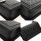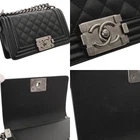 CHANEL Women Shoulder Bag A67085 Boy chanel Small Handbag 7.9" black Description SKU Number 672054 Genre Shoulder Bag/Women Brand CHANEL Model Number A67085 Serial Random serial Material Grained calfskin Color black × SilverMetal Metal Color: SilverMetal Condition Details second hand Rank:SA Outside:The stitching on the handle is broken and there are some discolorations on the metal, but otherwise it is in good condition with no noticeable damage. Inside:The pocket is slightly open. Size(CM) H:about 12.5cm W:about 20cm D:about 7cm Shoulder:about 110cm (maximum) Size(Inch) H:about 4.9inch W:about 7.9inch D:about 2.8inch Shoulder:about 43.3inch (maximum) Accessory Our sales certificate Specification Switching Type:Push lock [Outside]None [Inside]Open pocket x 1 Condition Status Comprehensive Evaluation Rank: SA Outer Remark Details:The stitching on the handle is broken and there are some discolorations on the metal, but otherwise it is in good condition with no noticeable damage. Inner Remark Details:The pocket is slightly open. Condition Rank N New Brand new with tags. S New / Unused New item, but may have insignificant scratches or slight discoloration due to storage or display. SA Mint Unused or barely used, may have some insignificant scratches or stains. A Excellent Used item, may have insignificant scratches and signs of usage. AB Very Good Used item, has some insignificant scratches and other signs of usage. B Good Used item, has some scratches, stains and obvious signs of usage. C Decent Item has scratches, discoloration and other noticeable signs of usage. Q antique antique items Please Note Please click the photos to enlarge, check each photo very carefully for its details. International Buyers Import duties, taxes, and charges are not included in the item price or the shipping cost. These charges responsibilities will rest with the buyers. Please check with the customs office in local to determine what these additional costs will be before bidding or buying. Other information the seller may like to remind: These charges are normally collected by the freight (shipping) company or when you pick the item up, please do not confuse them with additional shipping charges. We do not lower the values of the items or describe the items as gifts. According to the regulations of the US and the International government, this conduct is prohibited. The dispatch method All Items are sent from Japan. The package with tracking number is covered by shipping insurance. Please note: Items may be required import duties, taxes, and additional charges. The recipient of the shipment is the importer on recording, who is responsible for all import fees in the destination country. If you have any questions about import duties and taxes, please contact your local customs office before buying and bidding. CONTACTS Please contact us via eBay message. If you have any problem or question, please contact us ASAP.