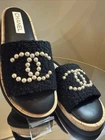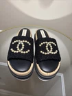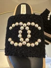 CHANEL CC PEARL LOGO SLIDES MULES NEW in original box, without dust bags Absolutely adorable mules Supper comfortable to walk, soft cushion foot bed