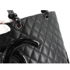 Absolutely love this CHANEL tote! The Cambon line's black leather with silver hardware is timeless and chic. Perfect size for daily use—fits all my essentials without being bulky. The enamel detailing adds a luxurious touch, making it a standout piece. The craftsmanship is impeccable, as expected from Chanel. Shipping was smooth, and the seller was responsive. A must-have for any fashion lover!