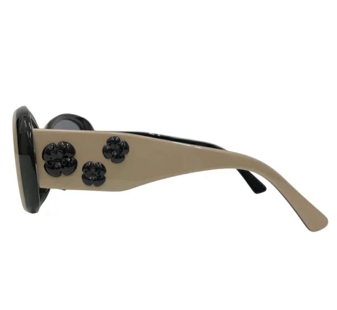 $ 79.4CHANEL Coco Mark Camellia Sunglasses 5111 Black Gold Luxury Fashion