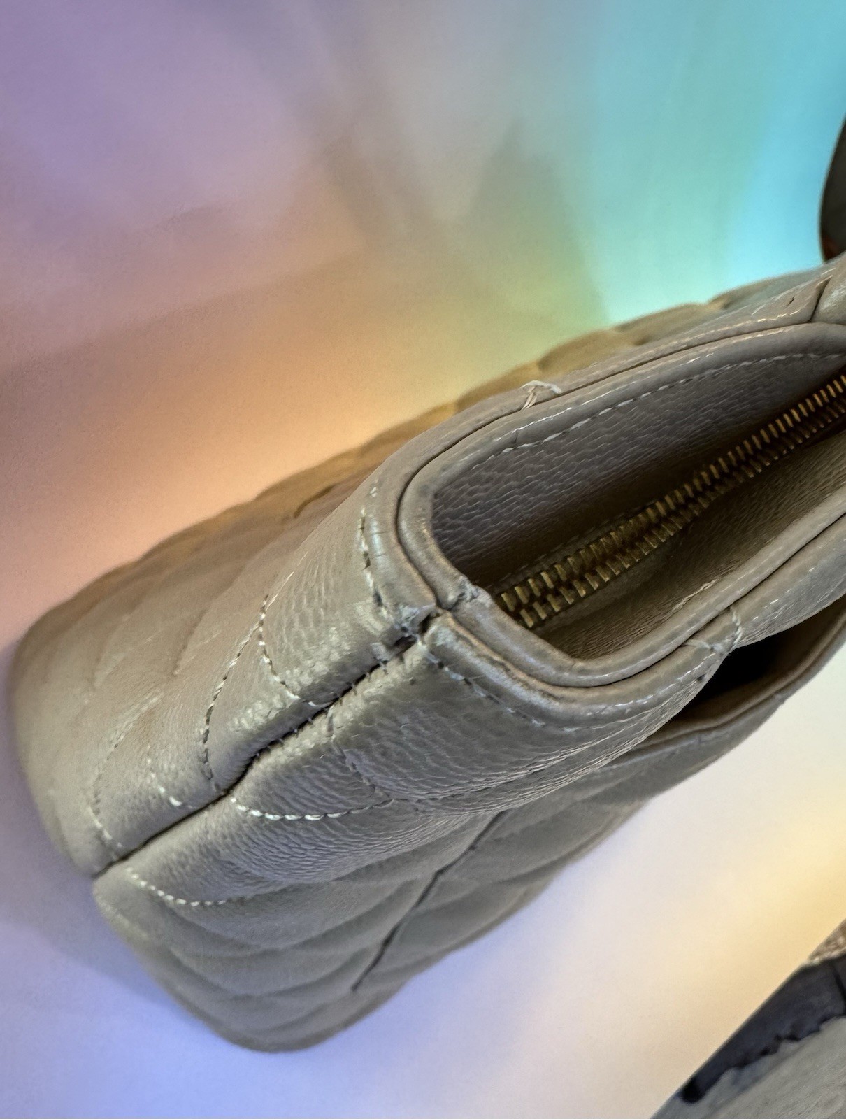 The CHANEL Caviar Gold Medallion Quilted Handbag in Light Beige Leather is a luxurious tote bag featuring a zip closure and gold hardware accents. Crafted from high-quality leather with a beautiful quilted finish, this medium-sized bag boasts a sophisticated design that is perfect for women looking to make a fashion statement. The beige exterior and lining, along with the elegant medallion detailing, ensure that this handbag is both stylish and timeless, making it a versatile accessory for any outfit or occasion. With a handle drop of 6.3 inches, this CHANEL handbag offers both functionality and elegance for the modern woman.
