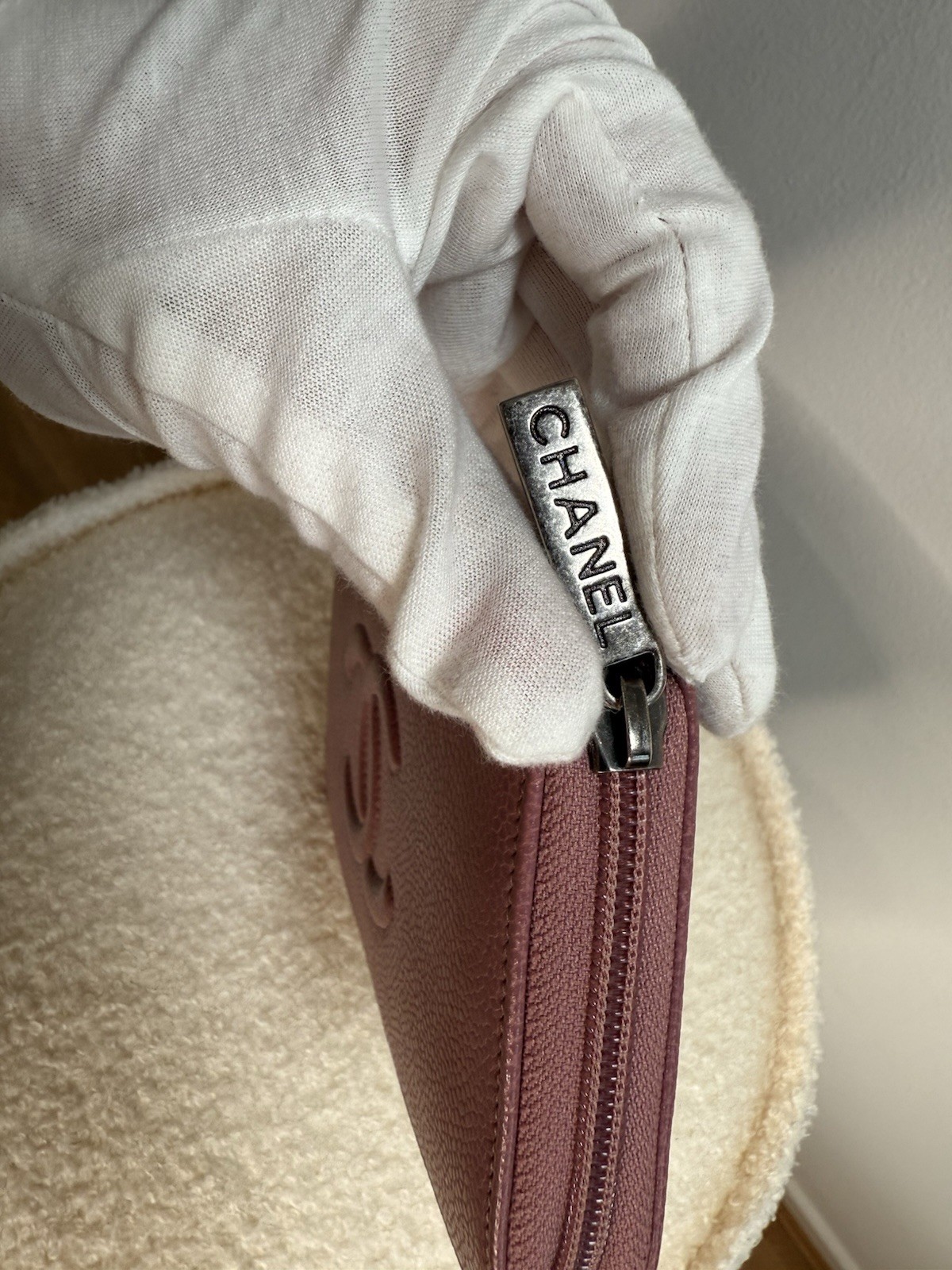 CHANEL Caviar Leather CC Zip Around Long Wallet Style:long wallet SIZE:W7.6 x H3.8inch/ W19.2cm x H9.7cm Material:caviar leather No box. NO dustbag CONDITION:good without mark but has some of the sight of imperfection It is a vintage item