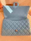 100% AUTHENTIC CHANEL Quilted Classic Flap Bag Color: Blue Material: Suede Goatskin Hardware: Silver-tone chain and hardware Includes: Original Chanel box and authenticity card This beautiful Chanel Classic Medium Double Flap from the 2013 collection is crafted in an elegant soft blue suede goatskin, offering a rich texture and refined, understated look. Finished with silver hardware, this timeless silhouette is both chic and versatile—perfect for day-to-night wear. A highly collectible Chanel classic in a rare and dreamy colorway that does not come around often. An effortless wardrobe staple for both everyday use and special occasions. Measurements: Length: 11 in Height: 6.75 in Width: 1.25 in Strap Drop: 9 in Condition: Good pre-owned condition. The leather remains smooth with minimal signs of wear, corners are clean, and hardware retains a beautiful shine. Light signs of use consistent with age; overall well cared for and elegant. Please Note: All sales are final Feel free to ask any questions prior to purchase Timely payment ensures prompt shipping Thank you for visiting, and happy shopping!