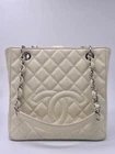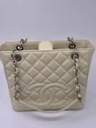 We guarantee this is an authentic CHANEL Caviar Quilted Petite Shopping Tote PST Ivory or 100% of your money back. This stylish tote is crafted of diamond quilted caviar leather in ivory color. This shoulder bag features leather threaded polished silver chain link shoulder straps with shoulder pads, a prominent quilted Chanel CC logo on the front and a flat pocket on the rear. Category Tote bag Brand CHANEL Size W9.6" x H9" X D3.5" Handle drop: 9.5" Color Ivory, silver hardware Material Caviar leather/metal Accessories Serial seal (date code): 14733759 Year: 2010-2011 Authenticity card: Yes Box: No Dust Bag: Yes Certificate of Authenticity: Electronic copy from Authenticate First About the Rank Ranking: [B] Ranking Scale: [A] – Like new, barely used [AB] – Good condition with normal signs of use, very minor damage [B] – Used condition. Some damages [C] – Obvious signs of heavy usage [D] – Junk condition Condition Outside: rubs and darkening on the corners. Caviar leather in good condition. darkening area noted where the loop sits on the leather for the chain. Very unnoticeable fine scratches on silver hardware Inside: Minimal signs of use, clean inside, no stains. Serial intact. Handle: small stain noted on the leather strap - see photo Zipper inside the bag: Works well Outside Pockets: Clean Odor: None detected. Notes We describe all items to the best of our abilities. However, descriptions are subjective and impression may vary from person to person as well as color may vary from monitor to monitor. All our items are authenticated by reputable authenticators. All our items are authentic with money back guarantee for authenticity. Brands identified are not involved in the authentication of the products being sold, and the brands assume no responsibility for their products which may be purchased from or through the website. Brands sold on Preloved Lux are not partnered or affiliated with Preloved Lux. AMERICAN & CANADIAN RESIDENTS MAY HAVE TO PAY TAX ON ALL ITEMS. PLEASE CLICK ON SHIPPING TO CHECK THE TOTAL TAX CHARGED BY EBAY. Due to large volume of messages received daily for price negotiation, we apologize in advance that we will not respond to any messages requesting discount or negotiation. We DO NOT accept any offers. All prices are firm in all our listing. Thank you for for visiting our page.