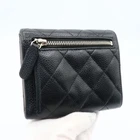 CHANEL Caviar Skin Quilted Folding Wallet Black Silver Hardware L 9.5cm W 11.5cm Description Condition: Used CHANEL Caviar Skin Quilted Folding Wallet Black Product Description Item Name Caviar Skin Quilted Fold Over Wallet Black Silver Hardware Serial number 25380360 Size: approx. Length 9.5 cm, Width 11.5 cm, Thickness 3 cm Specifications 1 change purse, 1 bill compartment, 6 card slots, 2 pockets Accessories None Item Condition. There is no peeling or sticking. The zipper is smooth. The buttons are securely fastened. There are some scuffs and sagging. There are stains on the coin purse. It is in good condition to be used as soon as you receive it. Payment Please pay within 5 days after the auction closed. Shipping Please check "shipping & payments". if you don't understand, feel free to contact us with any questions Returns Returns are accepted ONLY if the item was not the item described. International Buyers - Please Note: * Import duties, taxes and charges are not included in the item price or shipping charges. These charges are the buyer's responsibility. * Please check with your country's customs office to determine what these additional costs will be prior to bidding/buying. * These charges are normally collected by the delivering freight (shipping) company or when you pick the item up - do not confuse them for additional shipping charges.