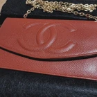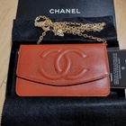 CHANEL Caviar Skin Chain Wallet in Terracotta Red Brown with Coco Mark Shoulder Bag