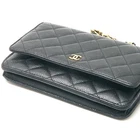 CHANEL Caviar Skin Matelass Chain Wallet Random Number Shoulder Bag Black x Gold