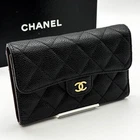**Title:** CHANEL Caviar Skin Trifold Wallet Black Leather **Product Description:** ✅ Immediate purchase is welcome ✅ Ships within 24 hours ✅ Returns and refunds accepted ✅ Follow my account for discounts! (Some restrictions apply) ☘️ All items have been lightly cleaned ☘️ Verified by store and authentication app **Item Details:** - Brand: CHANEL - Model: Caviar Trifold Wallet Matelassé - Color: Black - Serial Number: 31552768 - Purchase Source: Only from authorized retailers - Size: Approximately 15 cm (W) x 10 cm (H) x 1.5 cm (D) - Accessories: Box, guarantee card (Note: Box may be included as a bonus) **Condition Rating:** - Near unused condition - Minimal usage, very close to unused **Condition Highlights:** - Distinctive texture - No significant shape distortion - Almost no corner wear, no major scratches - No stickiness or peeling - Stored carefully in a non-woven bag - Clean edges, shiny hardware **Purchase Information:** - Only purchased from stores that sell authenticated items. - Double-checked using an authentication app. - Packaging will be minimal and simple. This item is pre-owned. Some may have initials engraved. Please understand this before purchasing. There may be minor scratches or unique leather scents not captured in photos. Please read the description and examine the photos carefully before buying. ↓ Check out my other listings ↓ #nana's high-end brand listings Thank you for your consideration! #CHANEL **Management Number:** M6167