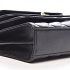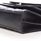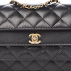 This is the rare CHANEL Calfskin Quilted Triple Flap Black with brushed gold, preloved in excellent condition! She is definitely a fashion statement piece! She has three different compartments to store all of your daily goodies. She is sold out everywhere. Comes with dust bag, box and authenticity certificate. Size: Shoulder Strap Drop Max: 23" Shoulder Strap Drop Min: 11.5" Height: 5.5" Width: 8" Depth: 2" This classic shoulder flap bag is crafted of luxuriously soft and supple diamond quilted calfskin leather in black. The bag features aged brushed gold chain link shoulder straps threaded with leather and a brush gold Chanel CC logo turn lock on the frontal flap. This opens to three multi flaps each crafted of black fabric materials. This is an excellent bag that is ideal for everyday use as well as a chic bag for entertainment and socializing for the special touch of quality and style you can rely on, from Chanel.