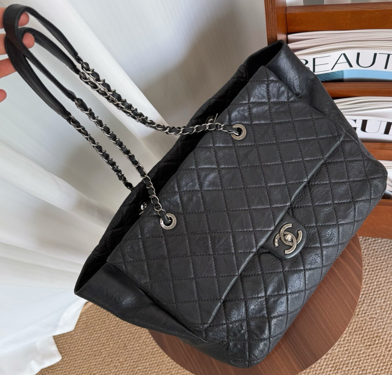 $ 179.32CHANEL Matelasse GST Chain Tote Bag in Black Calfskin with Gold Hardware A50995
