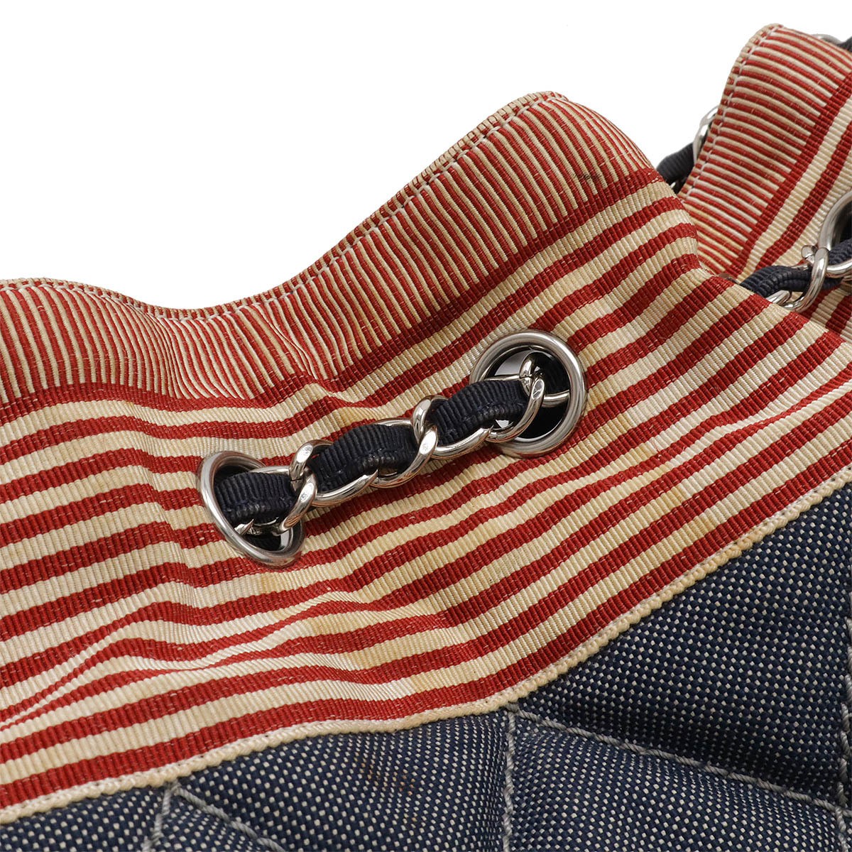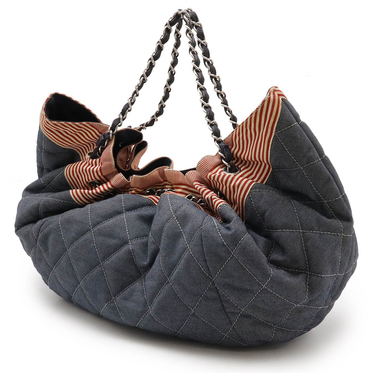 CHANEL Coco Cabas GM Coco Mark Tote Bag Chain Shoulder Border Denim Leather Navy