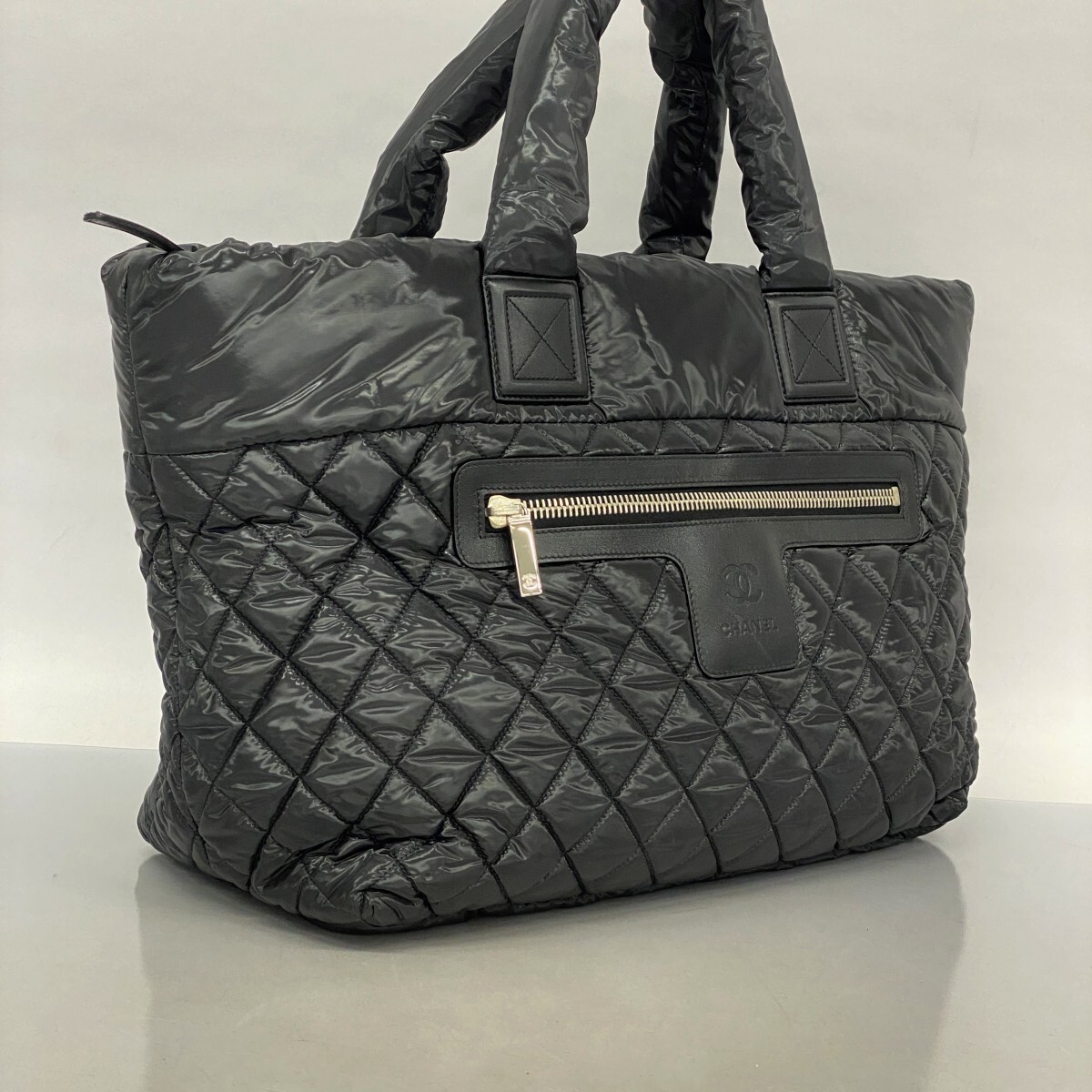 CHANEL Coco Cocoon Small Quilted Nylon Tote Bag in Black with Silver Hardware