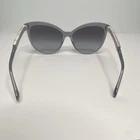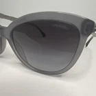 Authentic CHANEL Crystal Baguette Cat Eye Sunglasses in gray. Sunglasses have a light gray retro cat-eye frame and lens with a gradient tint of gray. The arms have a row of baguette and cubed crystals, and the metallic detailing with CHANEL logo on the temples adds a touch of elegance to this classic CHANEL piece. This is Old Hollywood Glam. Includes original authentic CHANEL case. Lightly used. Smoke free home. Original retail: $980 UV protection up to UV400. Made from high-quality acetate, the sunglasses boast a cat-eye style with a 140mm temple length, all manufactured in Italy.