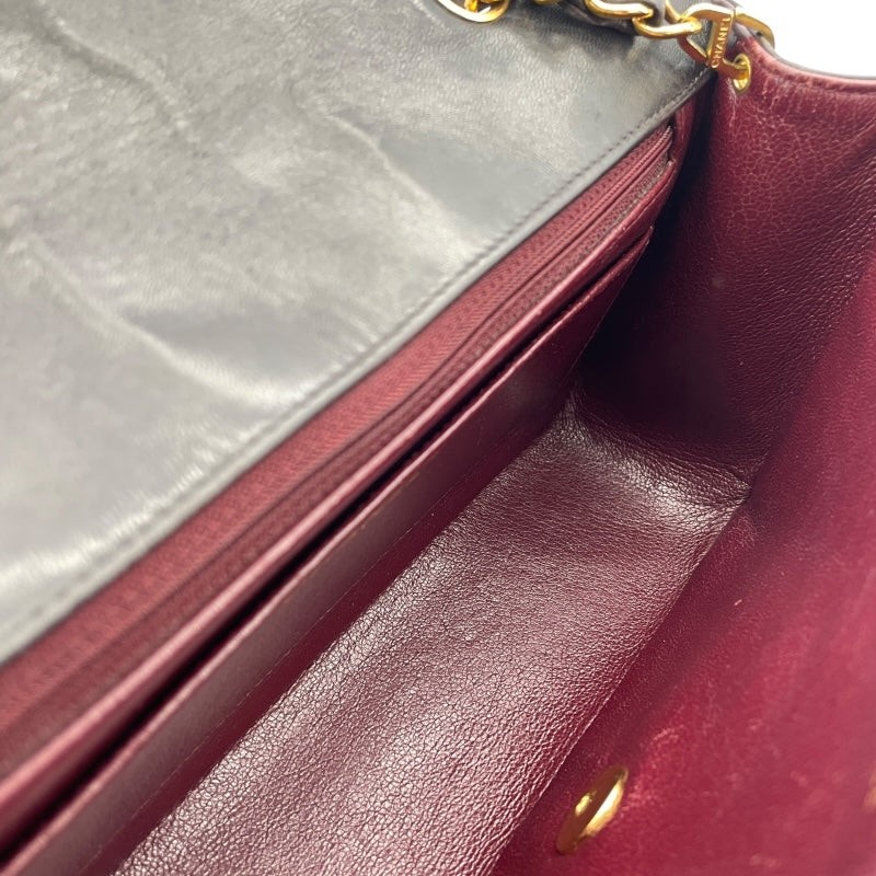 This CHANEL Diana bag is a timeless beauty with a chic black lambskin and gold hardware combo. Despite some light wear like surface wrinkles and minor hardware scratches, it still looks elegant and holds up well. The spacious interior with pockets is super practical, and the 22cm size is perfect for everyday use. The pre-loved condition makes it more affordable while keeping that classic CHANEL luxury. A great choice for anyone wanting a vintage vibe with character!