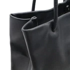CHANEL Black Silver Leather Tote Bag with Chocolate Bar Logo Shoulder Bag DDU