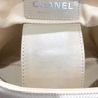 This Chanel Flower Power shoulder bag has a cool vintage vibe with its distressed canvas and silver hardware—perfect for effortless boho-chic styling! The size is roomy enough for daily essentials, and the open-top design makes it super easy to grab things. Love the unique floral print, and despite some wear, it adds character. Great find for Chanel collectors who appreciate a well-loved piece with history!
