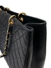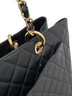 CHANEL Black Caviar Leather Chain Tote Bag with Quilted Stitching