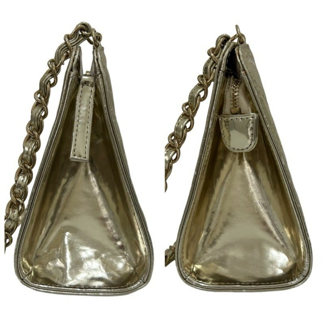 This CHANEL shoulder bag is absolutely stunning! The gold patent leather with embossed symbols gives it a luxurious and elegant look. The chain strap adds a chic touch, making it perfect for both day and night. Despite some minor wear, it’s still in great condition and comes with the booklet and warranty card for authenticity. The packaging is secure, ensuring safe delivery. A must-have for any fashion lover!
