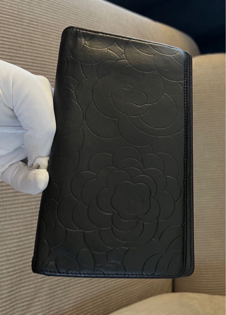 CHANEL Long Wallet Bi fold Camellia Lambskin Coco Mark Black NF133287