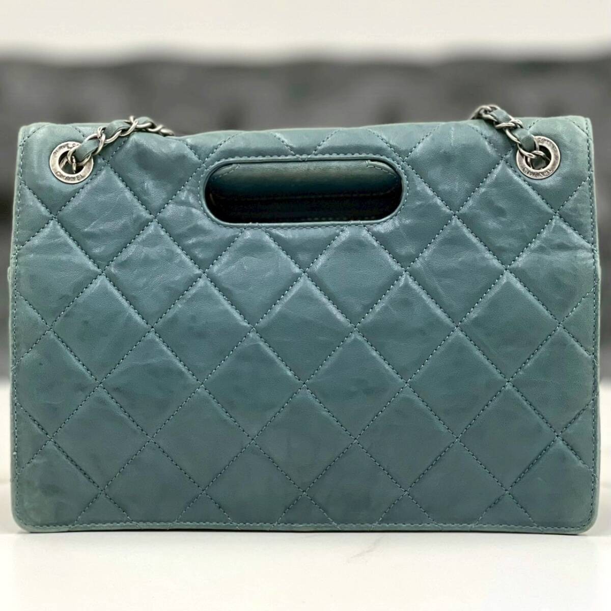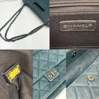 $ 1211.13CHANEL Jersey Leather Bicolor Matelass W Double Chain CC Turn Lock Shoulder Bag