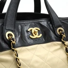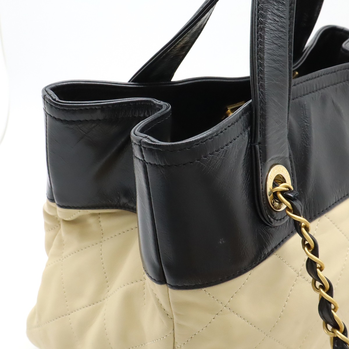 CHANEL Matelassé Beige Leather 2-Way Chain Shoulder Tote Handbag