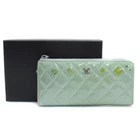 CHANEL Matelass Coco Mark Long Wallet L Zip Enamel Green GL233404