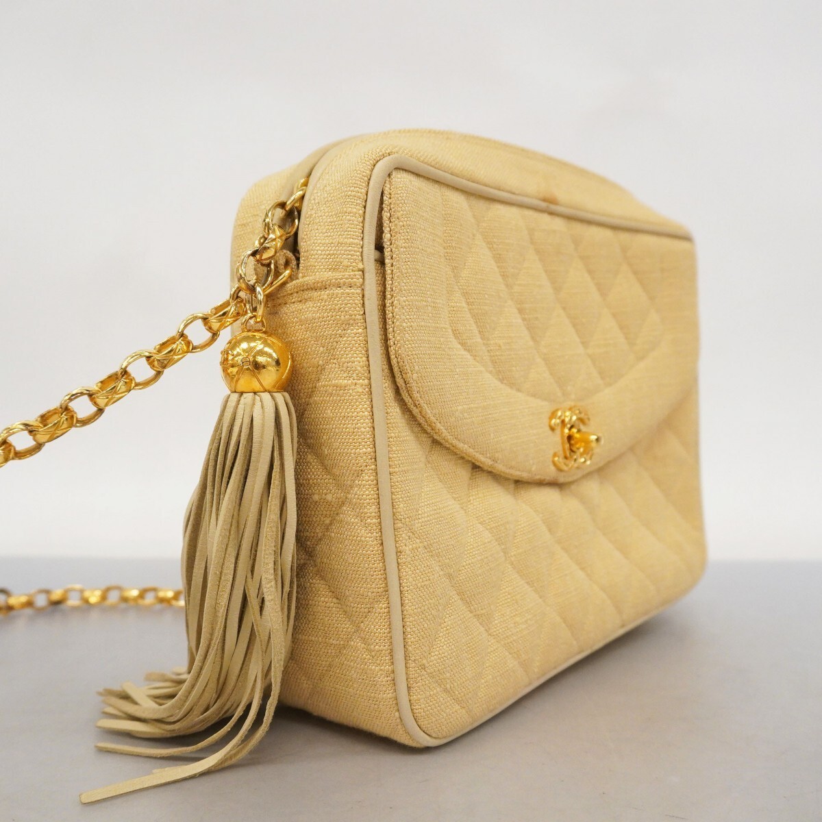 This CHANEL shoulder bag is absolutely stunning! The matelassé design with fringe detailing gives it a luxurious yet playful vibe. The beige canvas is versatile and pairs well with any outfit. The chain strap adds a chic touch, making it perfect for both casual and dressy occasions. The quality is top-notch, and it feels as elegant as it looks. Definitely a must-have for any fashion lover!