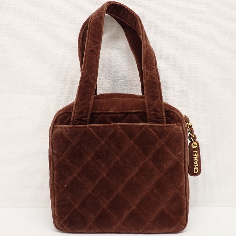 CHANEL Matelass Velvet Handbag Tote Bag Brown Small 4th Generation Good Conditio