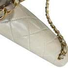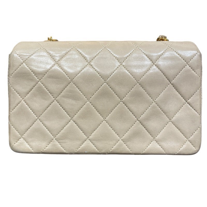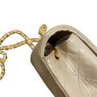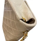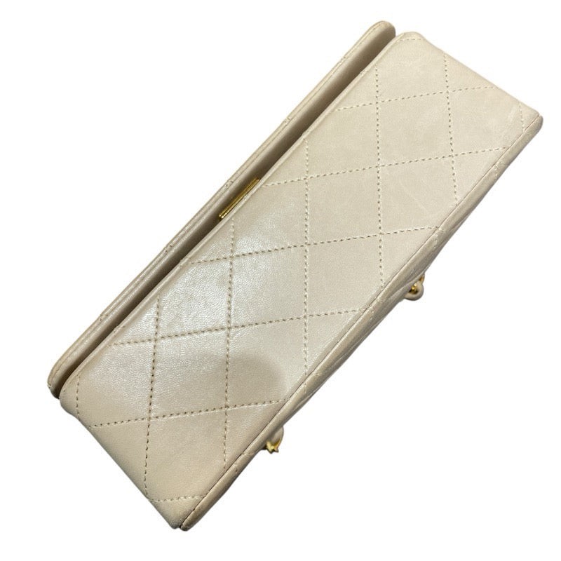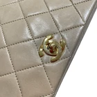 This CHANEL Matelasse shoulder bag is a timeless beauty with its beige lambskin and gold hardware—perfect for adding elegance to any outfit. Though it shows signs of wear, the vintage charm and classic design make it a fantastic find. The size is practical, and the turn-lock closure adds a sleek touch. Great for those who love a well-loved, authentic piece with character!