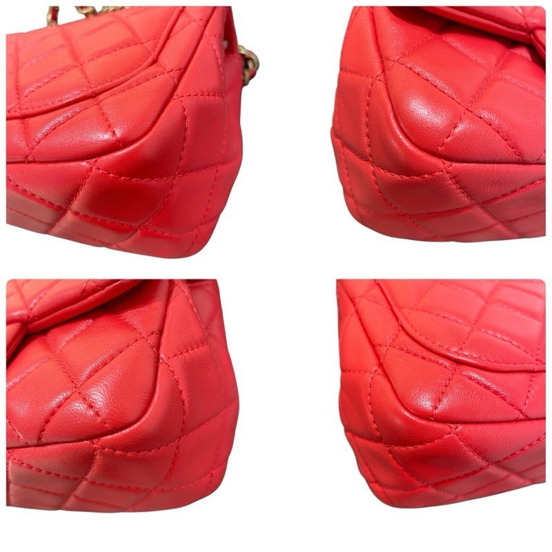 Absolutely love this CHANEL shoulder bag! The vibrant red lambskin with gold hardware is stunning, and the matelasse quilting gives it that classic elegance. Despite minor wear inside and on the metal fittings, it still looks luxurious. The size is perfect for essentials, and the ball chain adds a chic touch. Comes with a dust bag and card—great find for any collector!