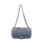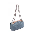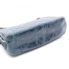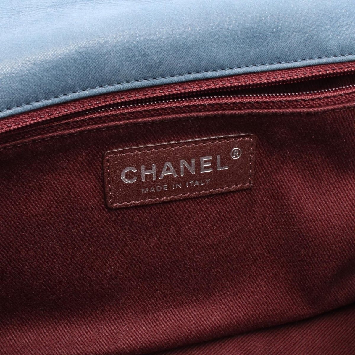 CHANEL Navy Silver Leather Chain Shoulder Bag