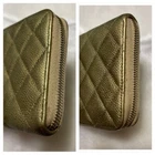 This CHANEL wallet is stunning—the metallic gold caviar leather still looks luxurious despite some light wear. The interior is clean, no stains or odors, and the gold hardware adds elegance. Scratches and fading are minimal for a pre-loved piece, and the size is perfect for everyday use. A great deal for a timeless designer item!