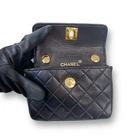 CHANEL Mini Matelass Lambskin Turn Lock Chain Shoulder Bag 1489 Black Caviar Gold Hardware