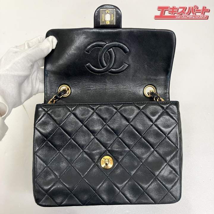 CHANEL 25 Matelassé Lambskin Chain Shoulder Bag Push Lock Black Vintage 1996-1997