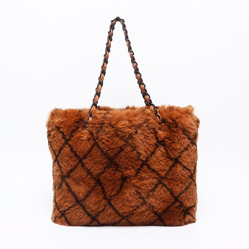 CHANEL No 6 Brown Rabbit Fur Chain Tote Bag