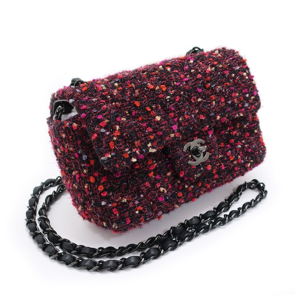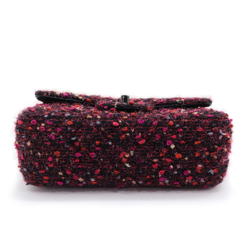 CHANEL Pink Black Tweed Lambskin Chain Shoulder Bag 20cm Ladies Handbag