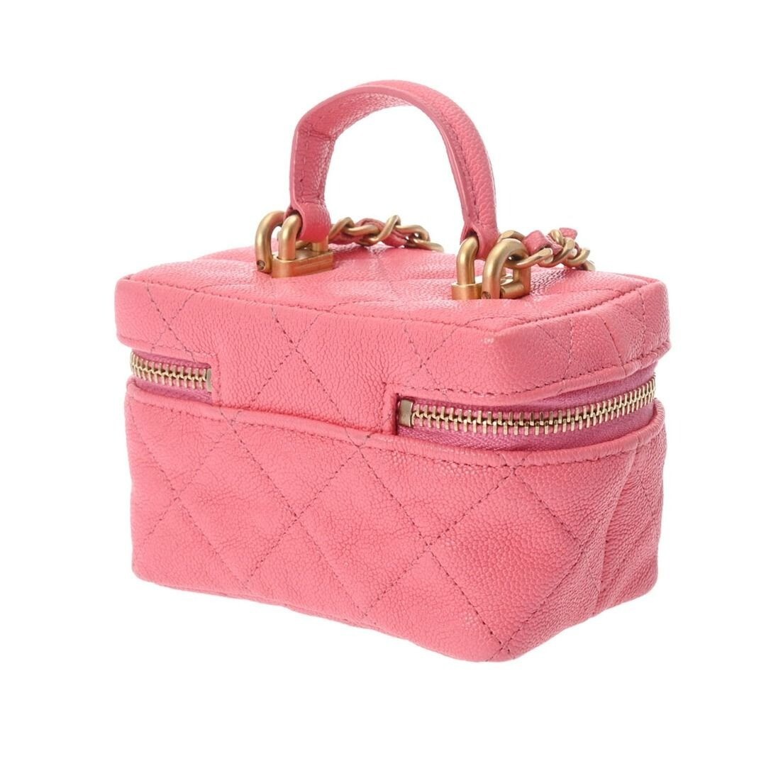 This is an authentic CHANEL Caviar Quilted Mini Top Handle Vanity With Chain in Pink. This stylish crossbody is crafted of luxurious caviar leather in pink. The bag features a leather threaded chain-link shoulder strap and aged gold hardware. The handbag features a 3/4 wrap-around zipper that opens to a fabric interior. From the Spring/Summer 2021 Collection by Virginie Viard. Base length: 3.75 in Height: 2.75 in Width: 2.50 in Drop: 2.75"-21.25" Condition: Great. Minor signs of use present. Please refer to all photos as they are part of the description. Accessories not listed in the description are for presentation purposes only. Includes: Chanel Card, Box, Strap, Dustbag 📦 We Ship Daily 💎 100% Positive Feedback ❣️ Follow Us For Latest Designer Arrivals ⚜️ AUTHENTICITY GUARANTEE: All The Reluxe™ items are carefully selected and authenticated by our team of experts. Our items are stored in climate-controlled warehouses and come from smoke-free/pet-free homes. This item has no offensive odors. Preloved vintage items may smell like their materials/storage. Tags: chanel bag, chanel crossbody, chanel woc, chanel tote, chanel travel, chanel preloved, vintage, y2k, handbag purse, chanel shoulder bag, chanel gst, chanel shopping tote, chanel shopper WHP5QQGH1O