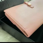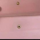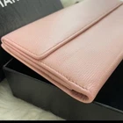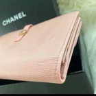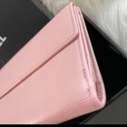 This wallet is absolutely stunning! The pink coco button adds such a chic touch, and the tri-fold design is surprisingly spacious. It feels luxurious and well-made, definitely my new favorite accessory.